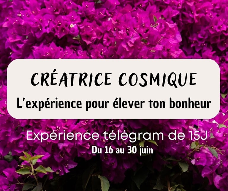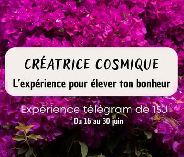 L'expérience Créatrice Cosmique s'est déroulée en live via un groupe télégram privé pendant 15J, du 16 au 30 juin 2025.