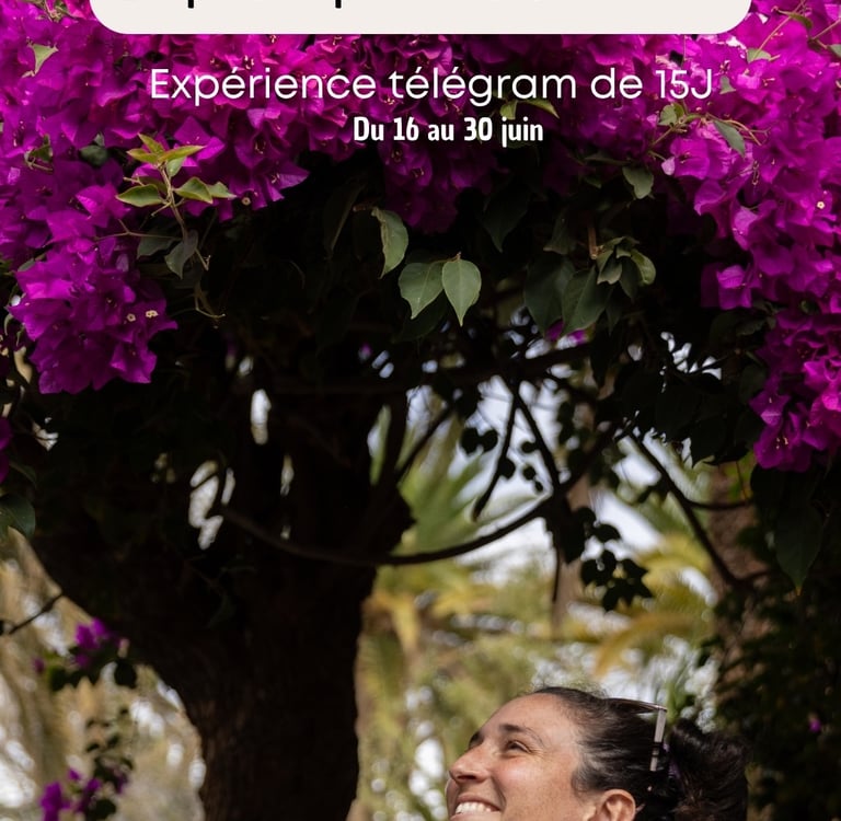 C'est 15 jours de plongée dans ton bonheur, avec des mise en mouvement, des moments de réflexions personnelle et des célébrations qui vont t'ouvrir une nouvelle porte d'accès vers toi.