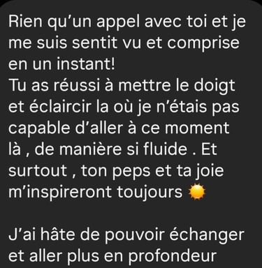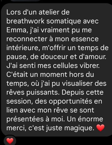 Amoureuse de la vie et de la magie du corps humain, j'accompagne les femmes à s'aimer mieux pour s'épanouir pleinement en sortant de l'anxiété. Choisis toi et fais partie des 100 femmes qui se sont transformées ces dernières années.